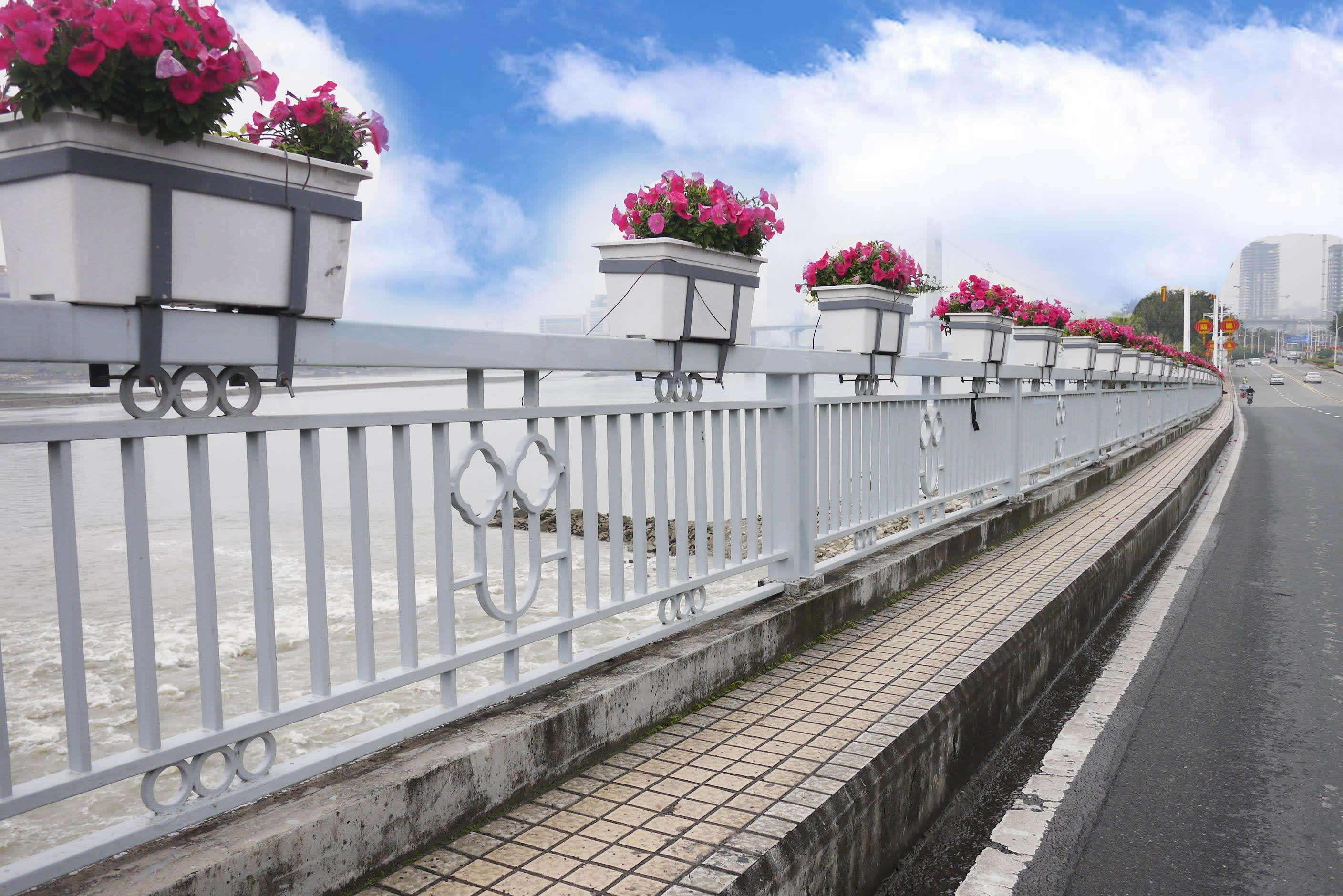 橋梁防撞護欄的美化功能:橋梁通過橋梁防撞護欄的不同材質(zhì)、不同的形式、不同的造型及不同的顏色,達到與道路環(huán)境的融洽和協(xié)調(diào),起到美化橋梁、美化環(huán)境的作用。